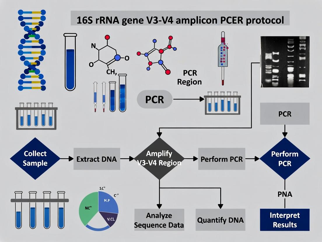 An optimized V3-V4 amplicon protocol begins with sample-specific DNA extraction.