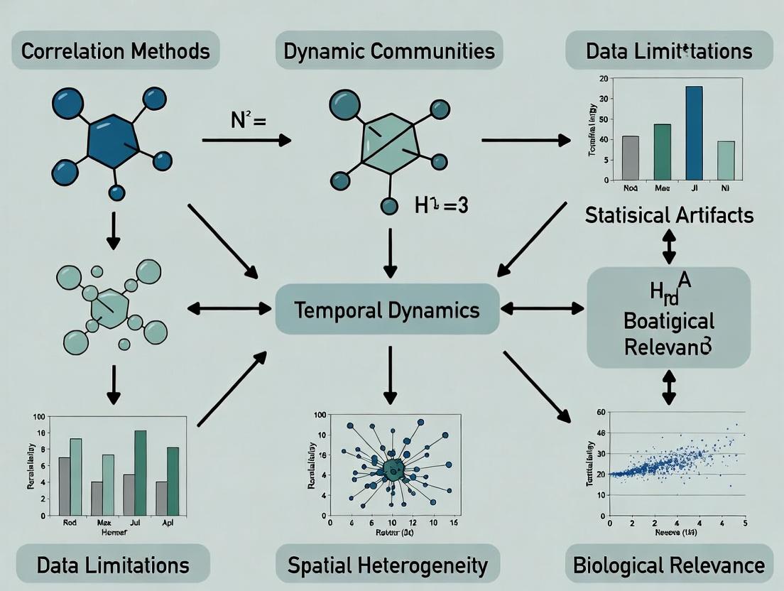 This article addresses the critical limitations of traditional correlation-based methods for studying dynamic protein communities and complexes, which are central to understanding cellular signaling and disease mechanisms. We explore why static correlation metrics fail to capture temporal reorganization, transient interactions, and causal relationships. The article provides a methodological review of contemporary alternatives—including temporal network models, integration of multi-omics data, and machine learning techniques—and offers practical guidance for their application and validation in biomedical research. Targeted at researchers and drug development professionals, this guide aims to equip scientists with robust frameworks for moving from mere association to mechanistic insight in systems biology.