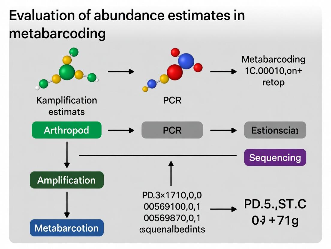 Arthropod metabarcoding has revolutionized biodiversity assessment and vector-borne disease surveillance, but transforming sequence read data into accurate biological abundance estimates remains a significant challenge. This article provides a comprehensive evaluation for researchers and drug development professionals. We first explore the fundamental promise and core biological and technical biases that distort quantitative signals, from primer mismatches to PCR stochasticity. Next, we detail methodological approaches, including spike-in standards, mitochondrial versus nuclear markers, and copy number correction models. We then offer a practical troubleshooting guide for optimizing laboratory protocols and bioinformatic pipelines to minimize bias. Finally, we critically assess validation frameworks, comparing metabarcoding estimates to traditional metrics like qPCR and morphological counts. The synthesis provides a roadmap for achieving more reliable abundance data, essential for ecological modeling, resistance monitoring, and assessing intervention efficacy in clinical and biomedical entomology.