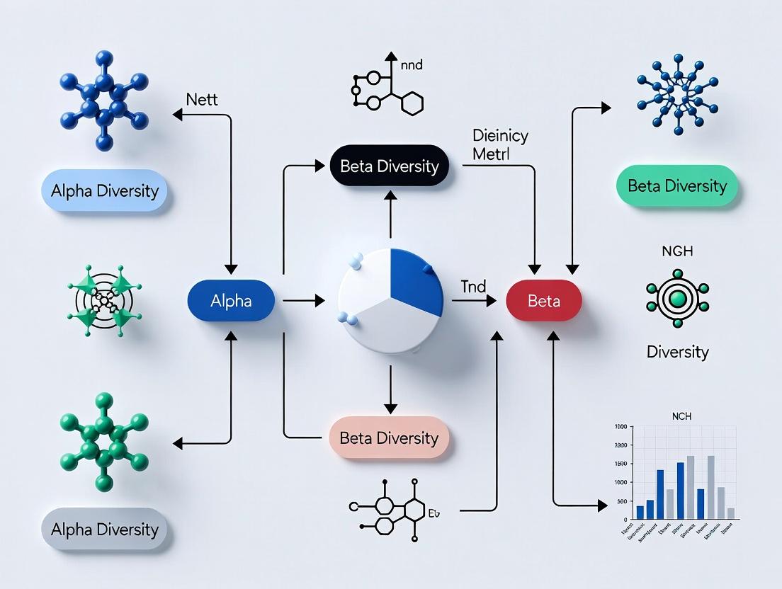 This article provides a targeted guide for researchers, scientists, and drug development professionals on the application of alpha and beta diversity metrics in microbial ecology.