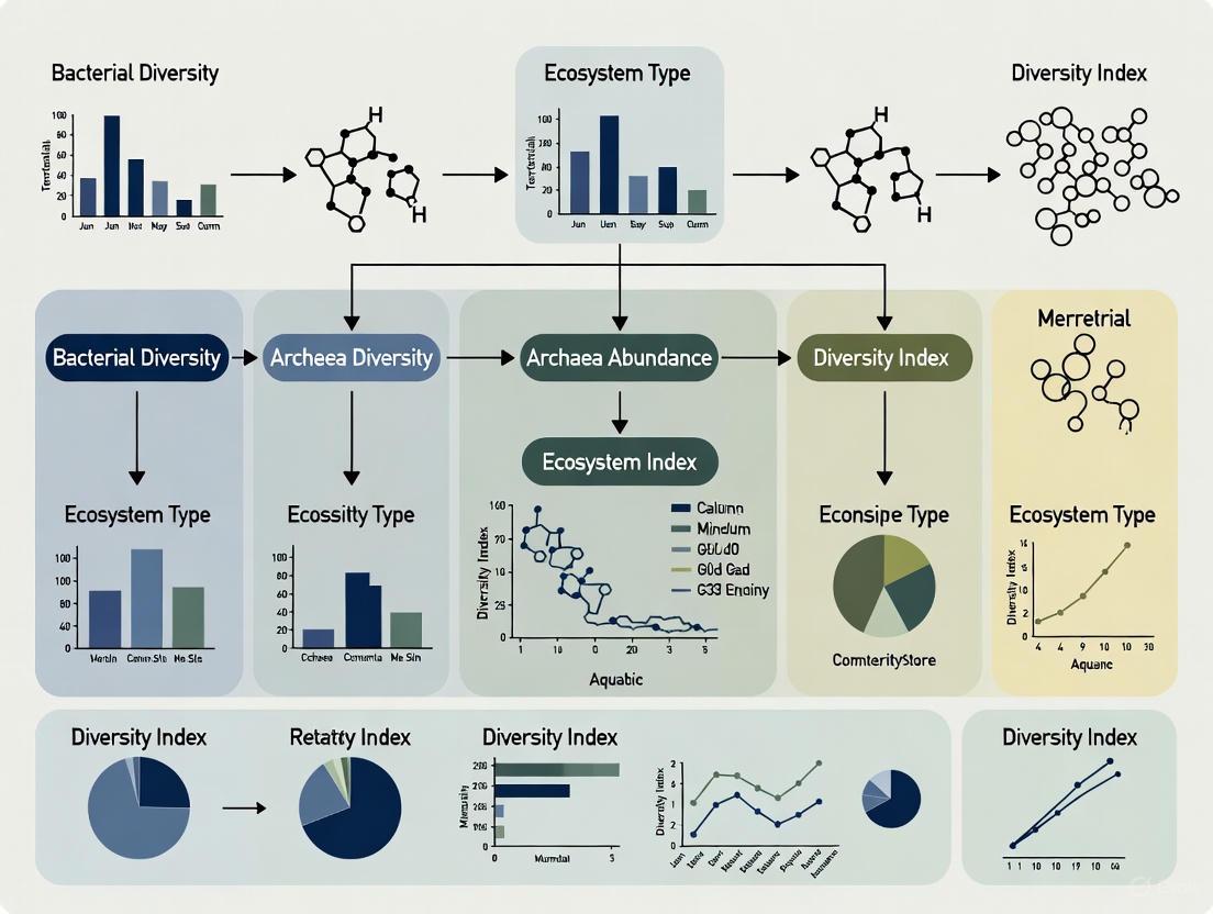 For researchers and drug development professionals, the systematic exploration of microbial diversity across ecosystems represents a rich resource for discovering novel bioactive compounds and understanding fundamental biological processes. Future research directions should focus on integrating multi-omics data across temporal and spatial scales, developing more sophisticated models to predict microbial community responses to environmental change, and leveraging microbial functional diversity to address global sustainability challenges.