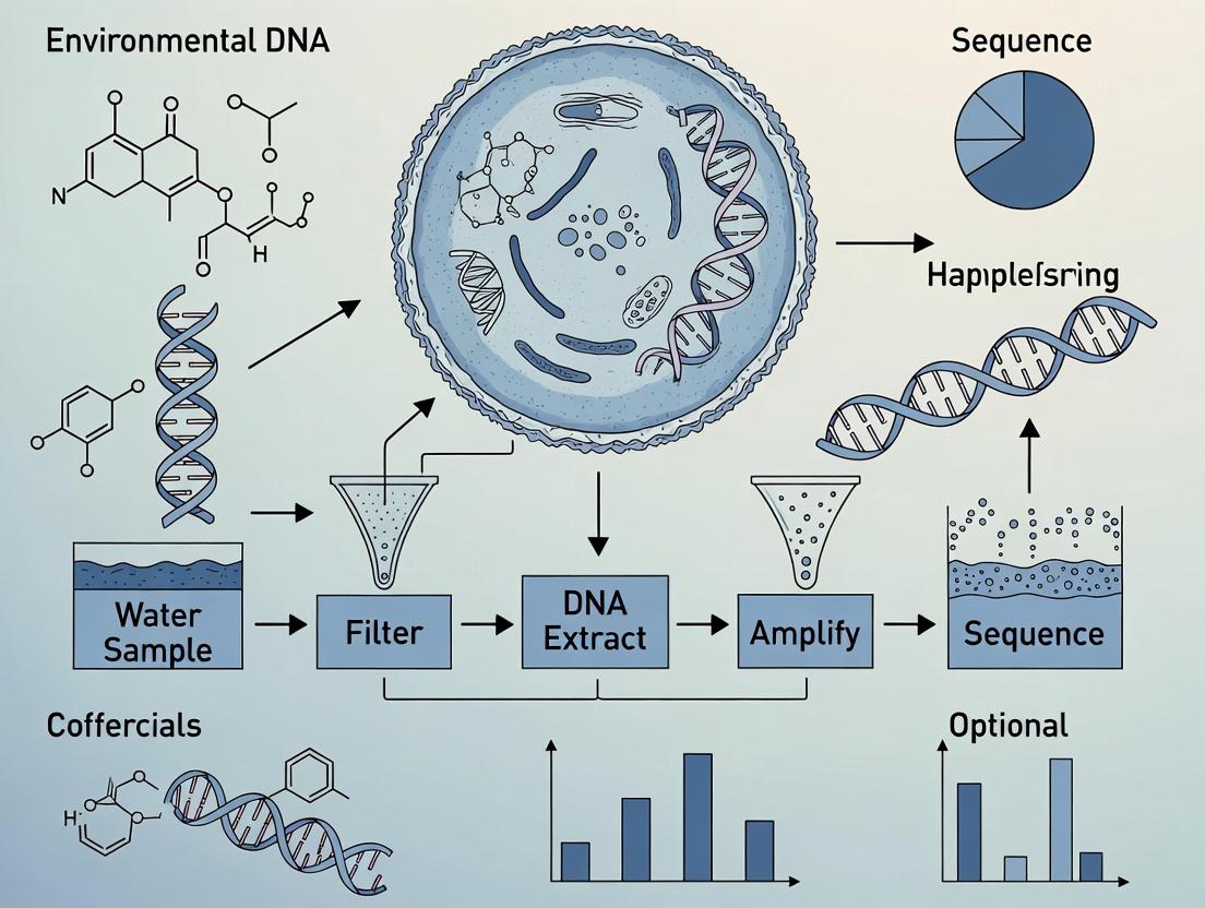 Note 3: Adaptation to Extreme Conditions. Shotgun metagenomics and metatranscriptomics of eDNA from hydrothermal vents, cold seeps, and hadal zones identify genes associated with extreme adaptation. This includes chaperones for thermostability, osmolytes for high pressure, and efflux pumps for heavy metal resistance. Expression data pinpoints active survival strategies in situ.